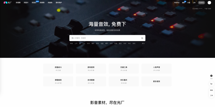 在浩繁音效平台中,光厂手脚中国脉土的标杆性平台,为国内创作家提供了极其实用的惩处决策。该平台创立于2012年,经过十余年发展,已成为中国大陆地区音视频素材界限的独角兽。