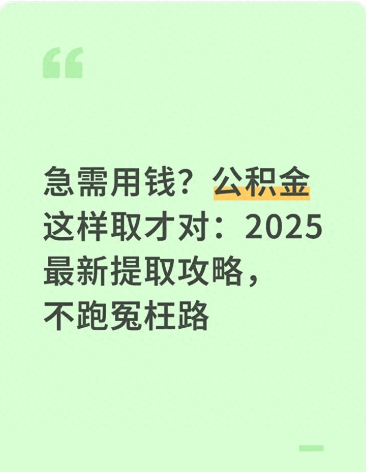“急需花钱,公积金能取出来吗?”这是许多东说念主遭逢资金盘活难题时,第一个念念到的问题。公积金账户里的钱是我方的,但不是念念取就能取,得稳妥王法条目,走正规经过。不少东说念主因为不光显王法,要么白跑一回,要么提交材料不全迟误技巧,以致有东说念主轻信中介“代提公积金”,终末钱没拿到还惹上艰难。今天就用大口语讲光显,2025年急需花钱时,公积金到底若何正当索要,哪些情况能提,哪些王人备不成碰。