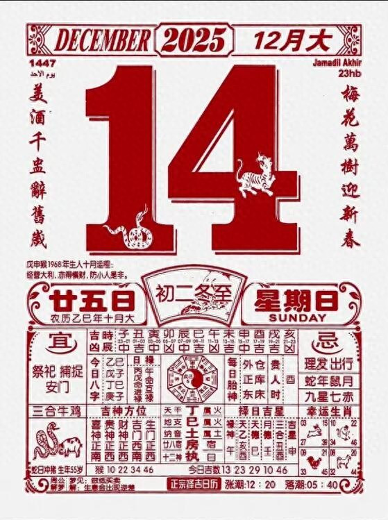 【逐日通书】12月14日, 日曜日, 能量驳杂, 诸事不宜。