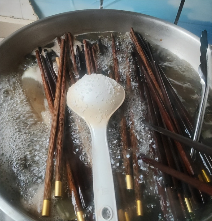 之前我就尝试了一下,把砧板和筷子皆放入到了锅里面用热水去煮,没念念到达到的着力皆不是很好。