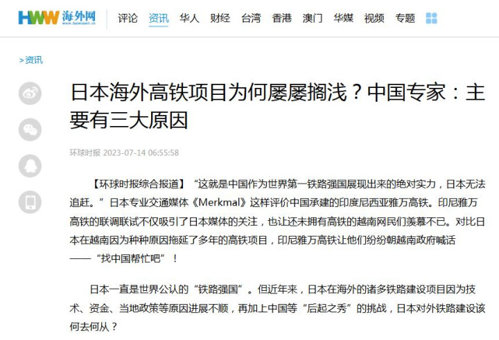 国外网 2023-07-14 日本国外高铁形式为何屡屡搁浅?中国众人:主要有三大原因